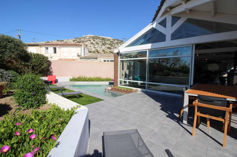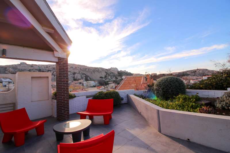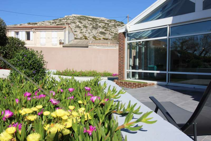 - A big terrace with a beautiful garden furniture which is composed of a bench, two armchairs and a coffee table. Perfect for the apéritif! From the garden you will appreciate the view on the port of Goudes.