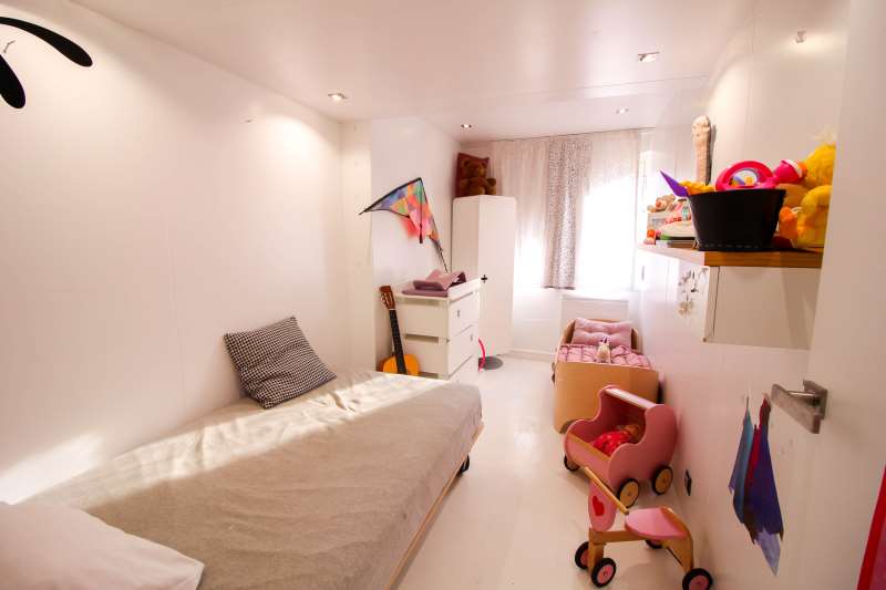 - A third and bright bedroom with a double bed (140 cms), a soft single bed and a desk.