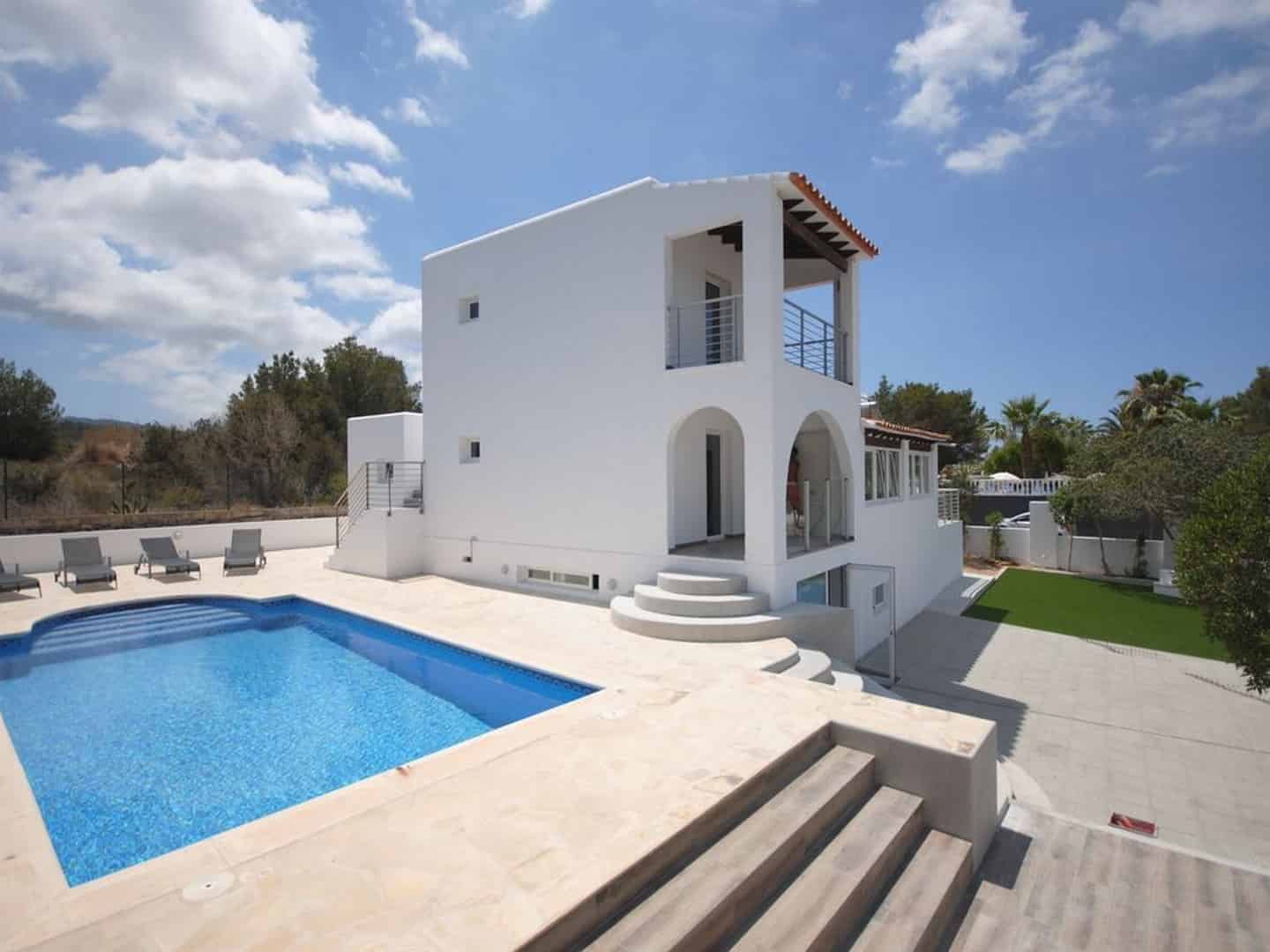 El exterior de la villa es limpio y ordenado, con una gran piscina y 3 terrazas separadas para atrapar los rayos en diferentes momentos del dÃa. Hay una terraza con sombra directamente de la cocina, que es ideal para comer al aire libre al sur. También hay una gran terraza con vistas al mar que es ideal para los amantes del sol, ya que tiene el hermoso sol de Ibiza durante todo el dÃa.