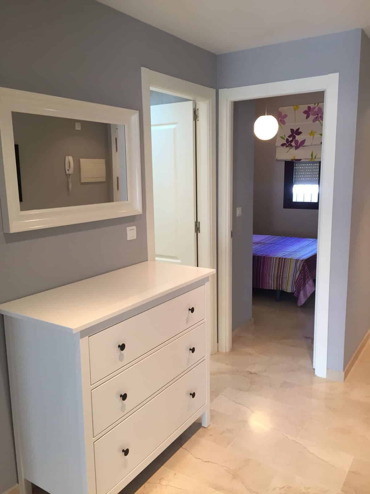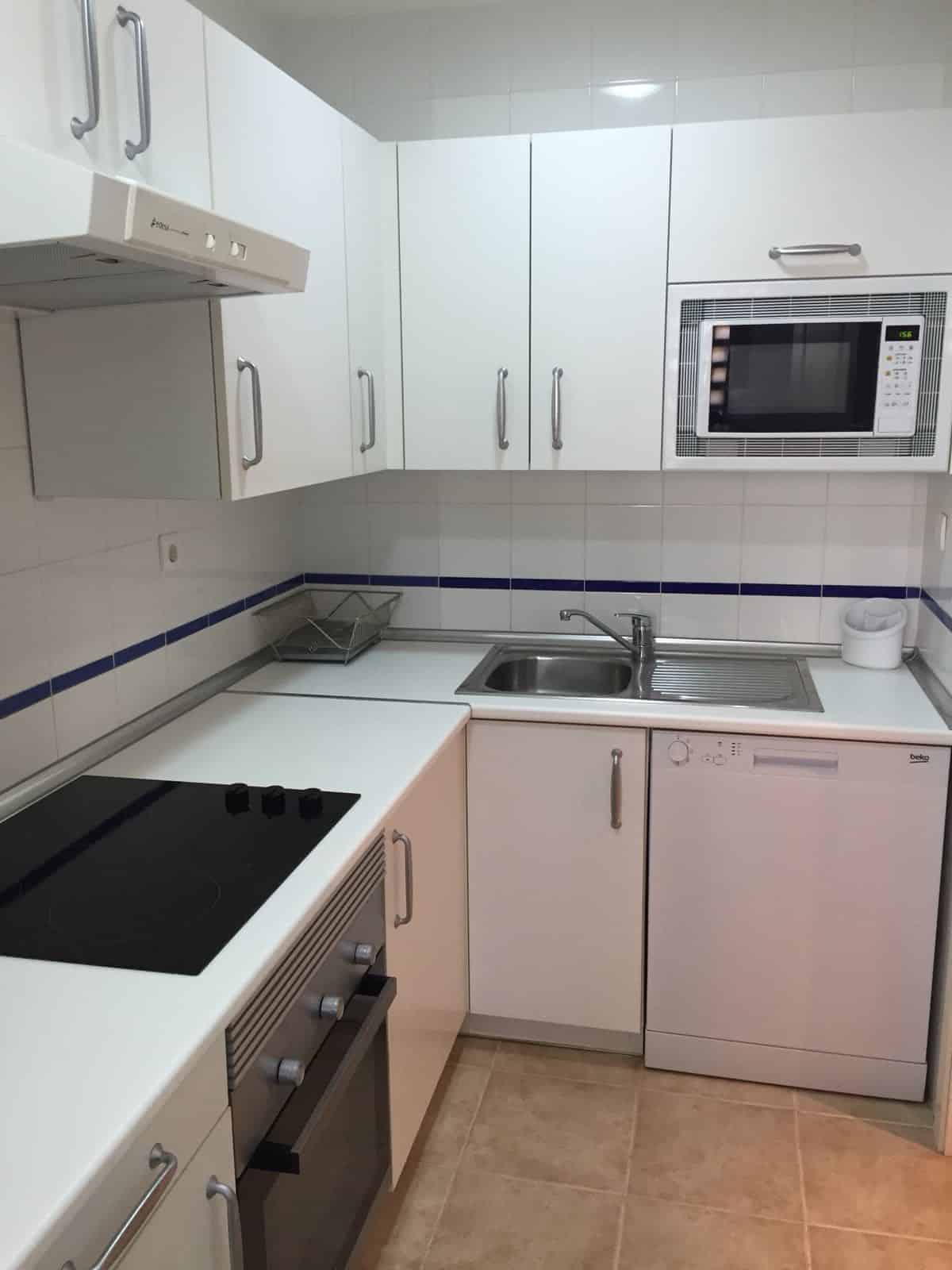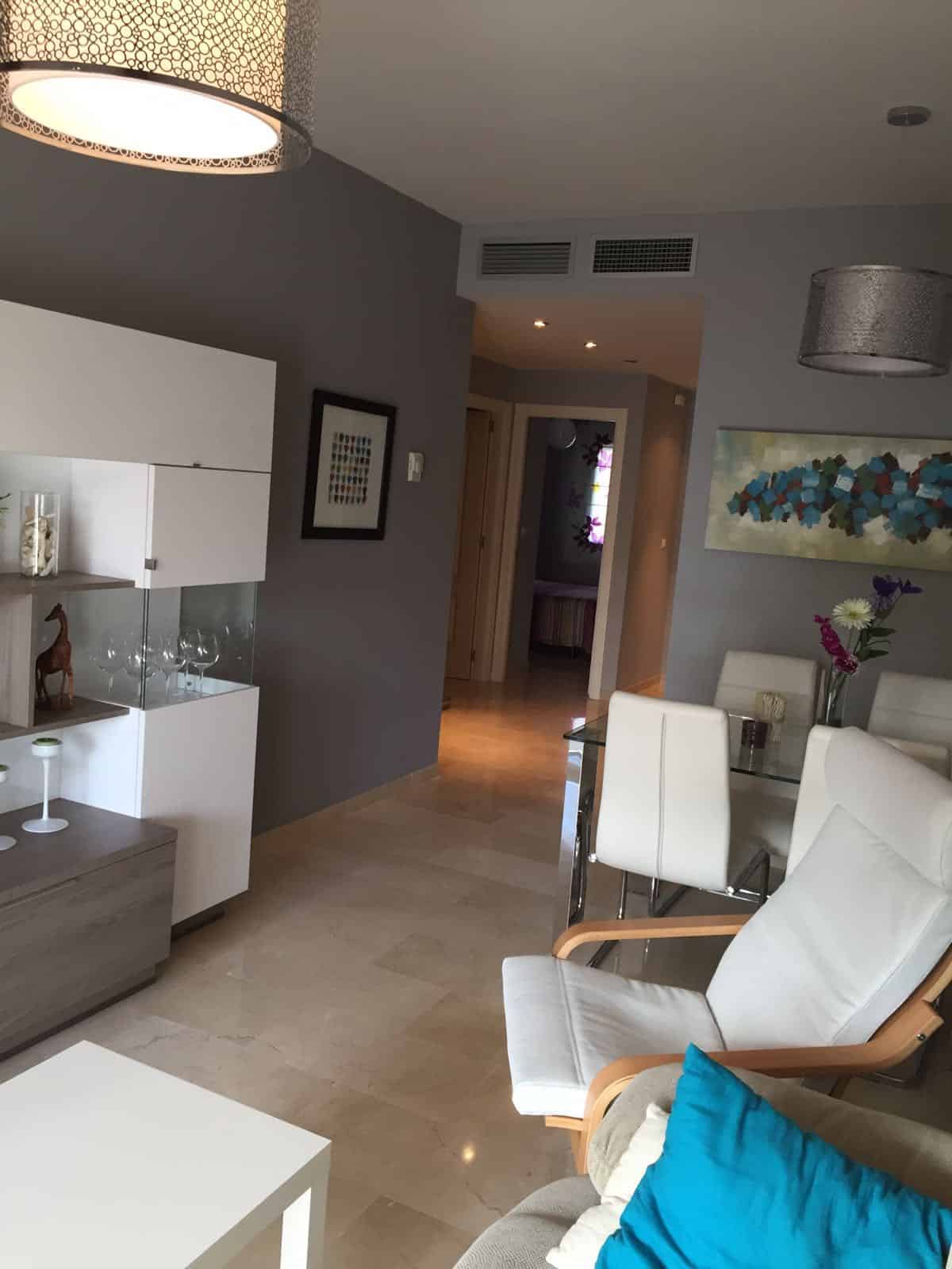 Estupendo apartamento a 5 minutos de la playas de Cabo Pino, cerca de Marbella y Fuengirola, tiene dos dormitorios de matrimonio, camas de 150 cm, uno en suite, dos baños, cocina independiente, plaza de garaje, amplia terraza, muy nuevo y moderno. Urbanización con jardines, dos piscinas, pista de pádel, espectacular.