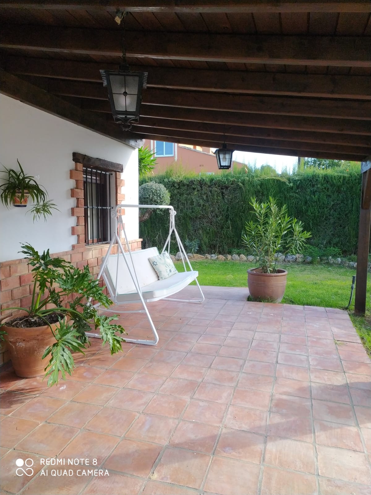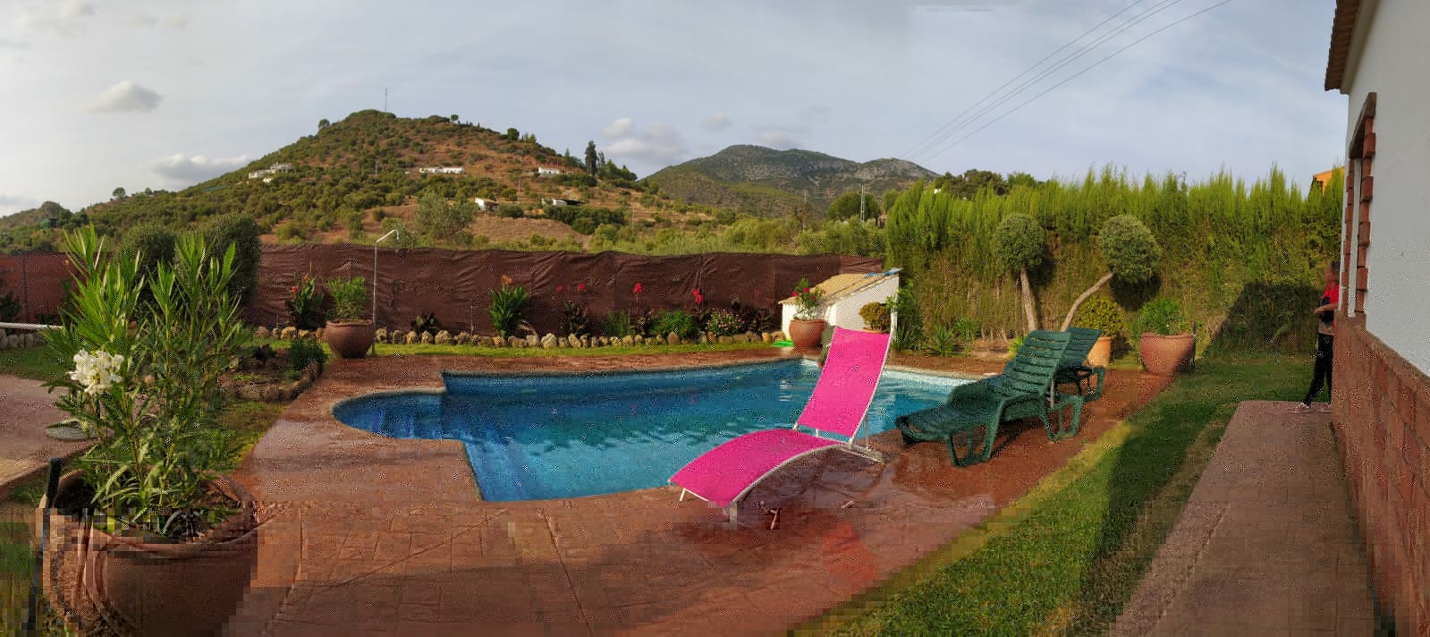 En el exterior hay un jardín, terraza, piscina, barbacoa y un proche.