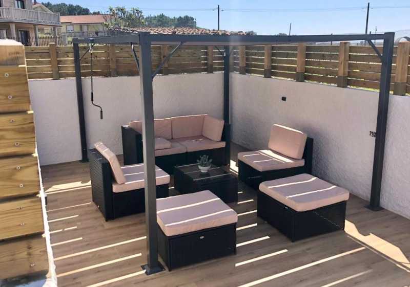Nuestras instalaciones están completamente adaptadas para que tu confort sea máximo vengas cuando vengas: podrás disfrutar de unos días de playa y terraza bajo el sol, o de un paseo junto al mar envuelto en bufanda mientras las olas rompen con fuerza en la costa.