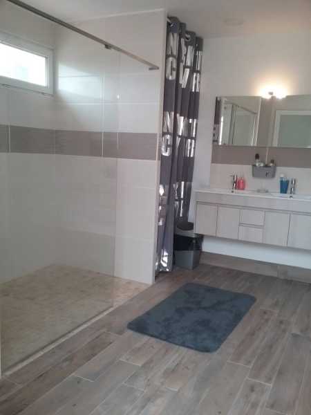 It has 4 bedrooms with linens provided and a large bathroom with shower, double vanity, washing machine, dryer, and towels. There are