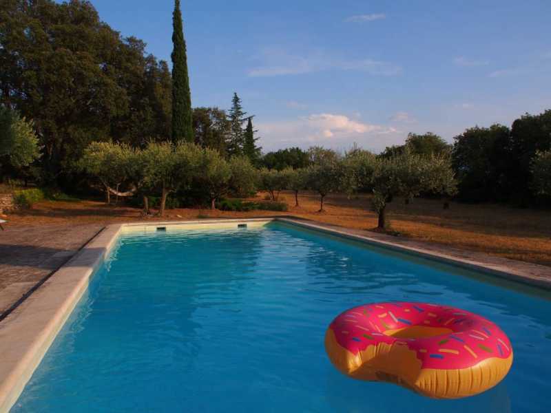 The 3-hectare wooded grounds include a borie dry stone hut with direct access via a footpath to Gordes, Senanque 12th-century Cistercian abbey, the garrigue Mediterranean scrubland, the Village des Bories, and the village of Cabrières. The Luberon Regional Natural Park and its villages Ménerbes, Bonnieux, Lacoste, Isle-sur-la-Sorgue, etc. are also nearby. The Avignon and Gordes Festivals take place in July and August. Amenities include a pétanque court, swings, and children's bicycles. Nearby: tennis, golf, bike rentals, canoeing.